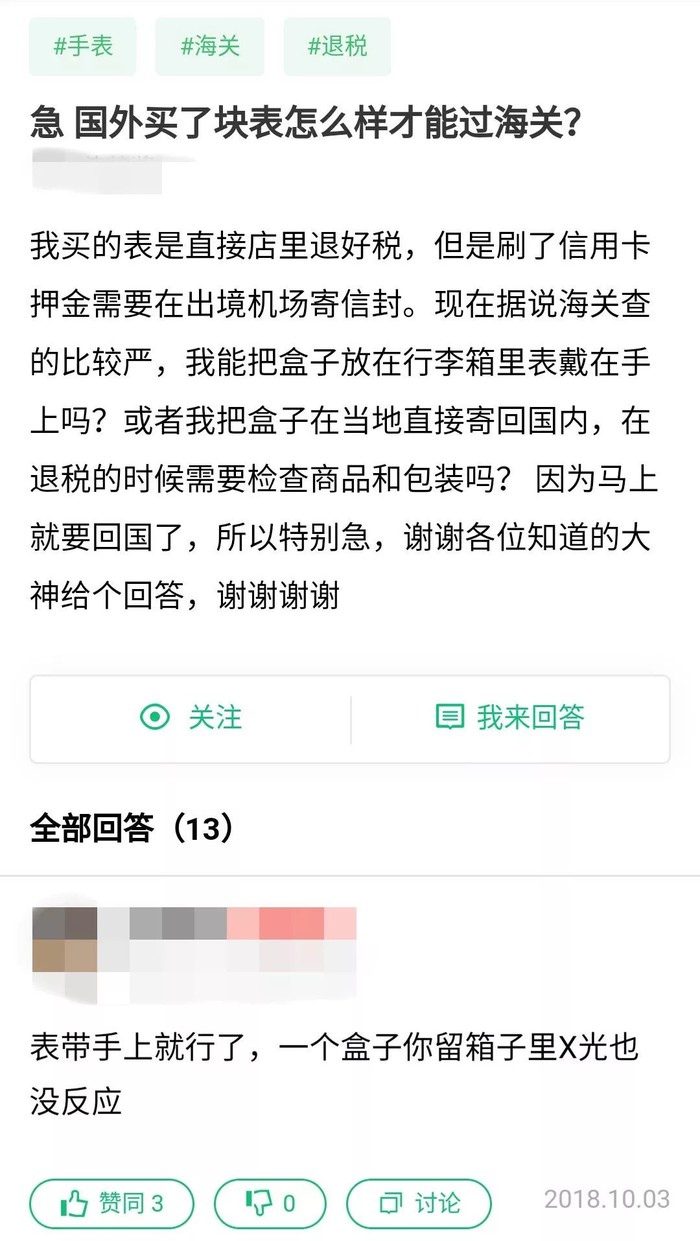 出去玩,难免会买买买~有的小伙伴想买块表又怕被税,一些网友就支招“将表戴在手上,盒子放行李箱”。