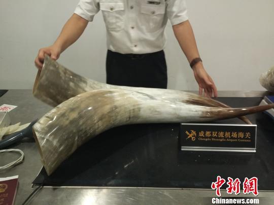 成都海关首次截获大型牛角 为中国籍旅客从非洲带回