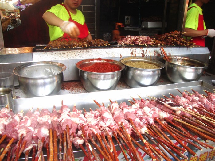 因为西安很多回民,所以他们的羊肉串都比较正宗,一定是不会拿猪肉来充数的。回民街有很多买红柳枝超大羊肉串的,这个试试就好了,味道一般般,但是真的超大串