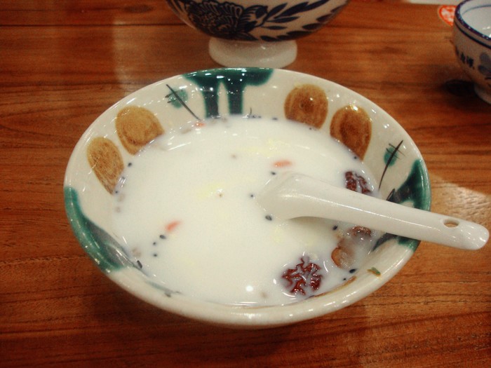 不知道这个是北方都有还是陕西的特色。反正我是第一次喝然后就被惊艳到了。特别是喜欢喝牛奶的孩子一定要试一试!奶味很浓也不会有热奶的腻味。里面一般会有红枣花生啥的,喝起来也不会单调