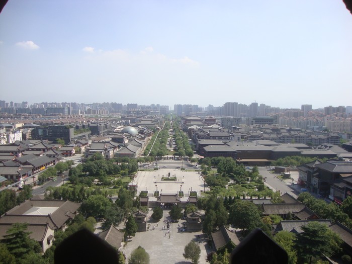 进入塔里面爬塔是要另外买票的。我建议可以进去看一看。里面都是翻新过的,用朱红的漆刷过。每一层楼的四面都有窗子可以看西安。现代西安中心城的整个布局上是沿着古长安城的布局来规划的,所以是沿着几条主干道呈棋盘状分布的。从高处看很壮观和大气。