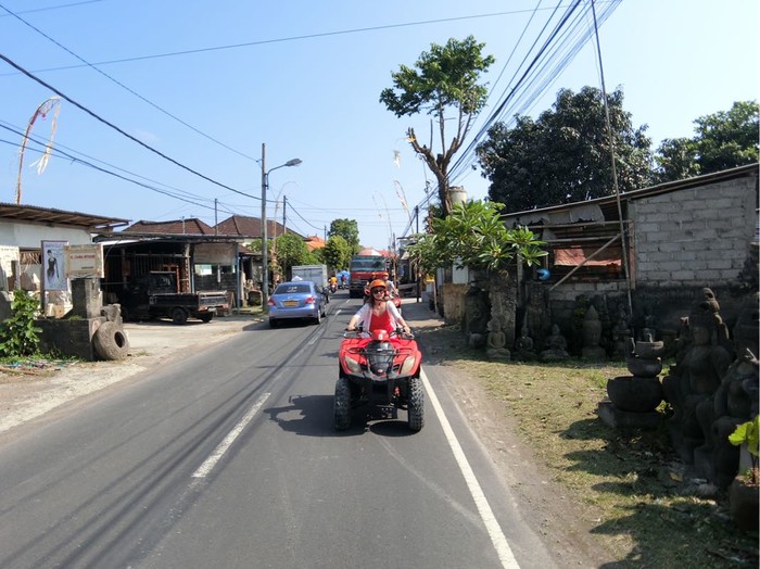 下午可以去骑个越野摩托。印尼语叽里咕噜的我给忘记了。适合城市人来感受田园风光,水稻田,小树林。怎么说呢,就像极了我小时候勤工俭学摘打瓜的五连……