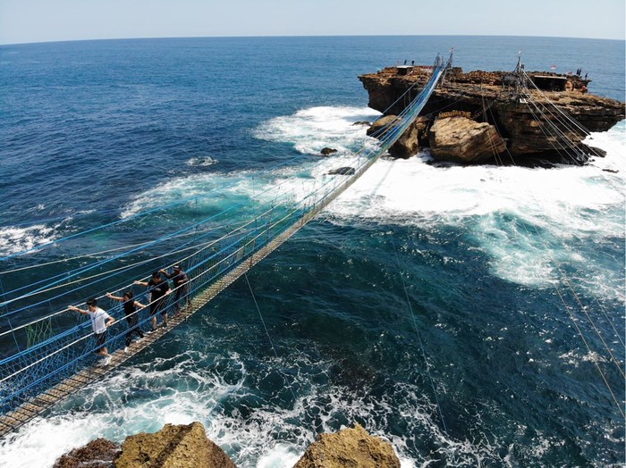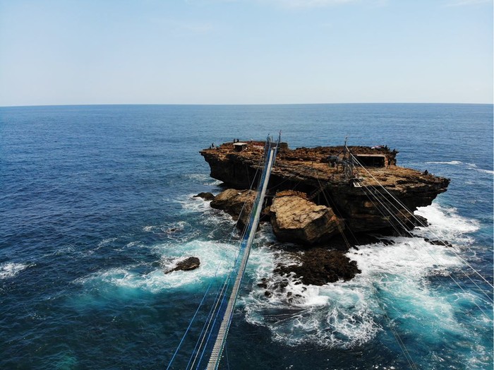 登岛的方式是通过木质吊桥或缆车。缆车的名字叫贡多拉,是一个纯人力的索道。
