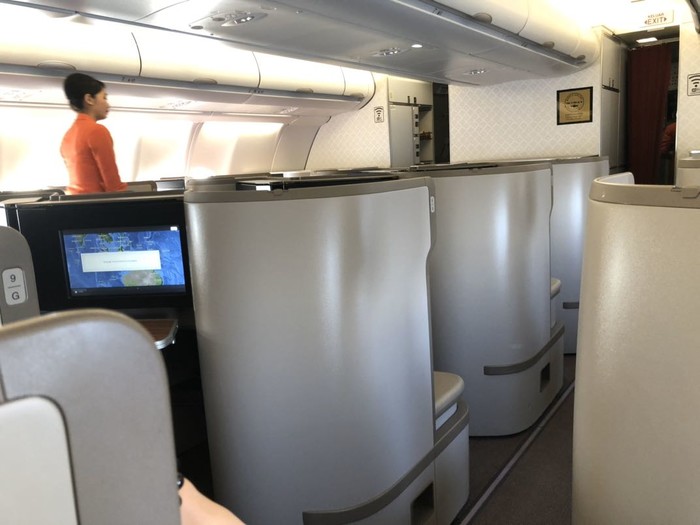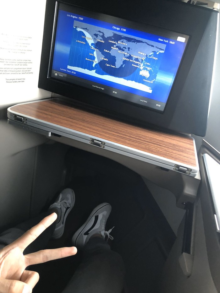 是反鱼骨式布局,可以180°平躺,但是我是一个一般在飞机上都睡不好的人。于是开启昏昏沉沉的一天。当然,对于精力旺盛的朋友来说。这航班时刻一定是个好选择。