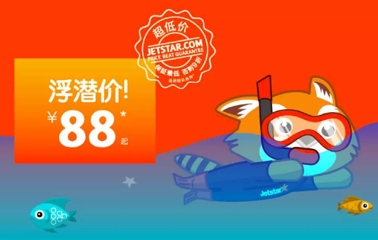 捷星航空夏末特惠,超低浮潜价88元人民币起~