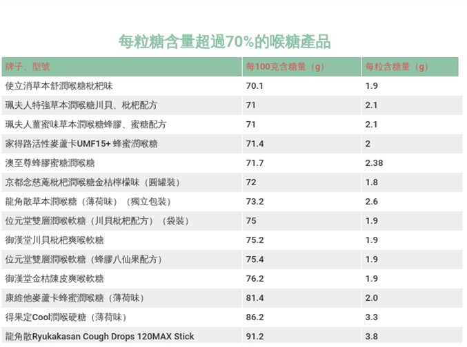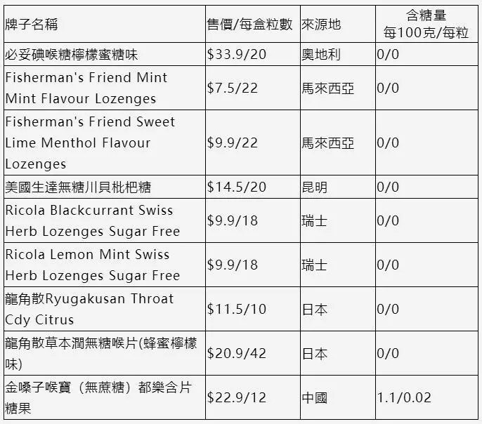 不含药的喉糖糖太多,含药的喉糖又不能随便买,那到底该如何选择喉糖呢?消委会也给大家挑出了9款不含药物成分、低糖甚至无糖的喉糖产品。