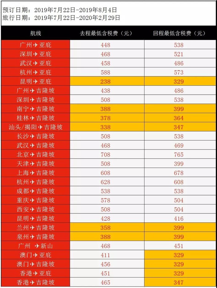 促销航线如下: