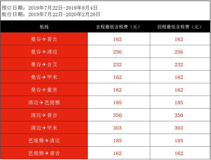 泰国航线: