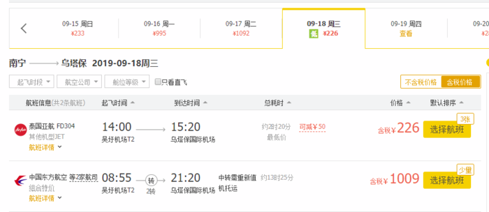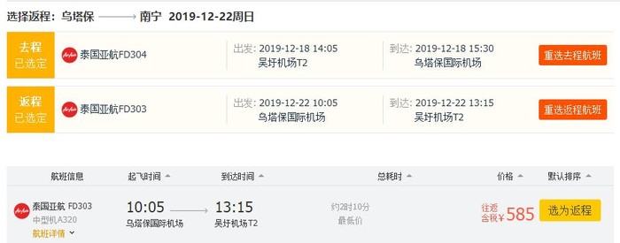 南宁=芭提雅,券后单程含税176元;往返含税585元;