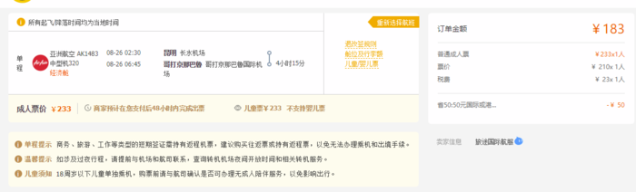 昆明=亚庇,券后单程含税183元;往返含税532元;