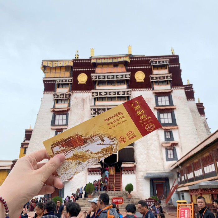Day4、布达拉宫。旺季提前官网定,我们一早排队买票。门票200元/人,导游费50元/人,报导游也需要排队买票的,我们是蹭的
