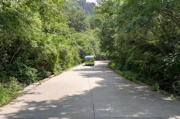 自小镇尽头搭乘景区内的观光车,开启祖山初体验。人在车中坐,景向眼中来。疾驰而过的观光车激起几只林间飞鸟,尖啸着冲向青天,几片绿叶随其后缓缓落下,融入夏日祖山的一片翠绿之中,成为游客眼中景。