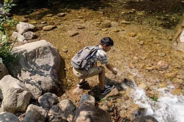 行车渐缓,四周青翠,时而传来悦耳鸟鸣,好一副生机盎然的景象。继续向前走着,山水好像有灵性,越是靠近,那溪流的声音更是悦耳动听,鸟鸣更是清脆娇人。