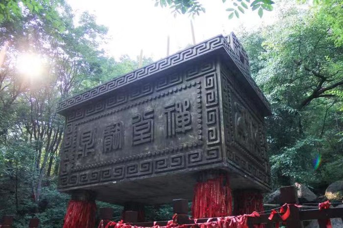 此时映入眼帘的,是一个船型香炉鼎,构造别致,与普通的只有一层的香炉鼎不同,它分成上下两部分,周身做成了游船的形状,顶上有个铜质的葫芦,很是精巧别致。香炉内的香灰清理的很干净,此处不能随意上香,会定期有人来上香打扫。