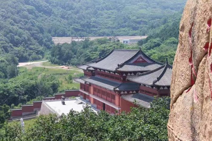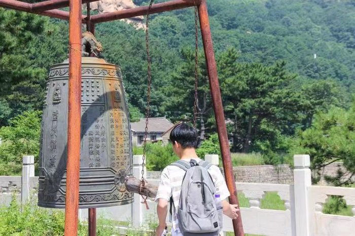 喝完茶,徐徐步行,欣赏山间风景,带下相机,记录这美好的时刻。不久便来到了山海禅寺。门前可眺望渤海,背后便是青翠的山和淡蓝的天空,团团白云映衬得天色更蓝,空气也更加清新。禅,是一种基于“静”的行为,源于人类本能。