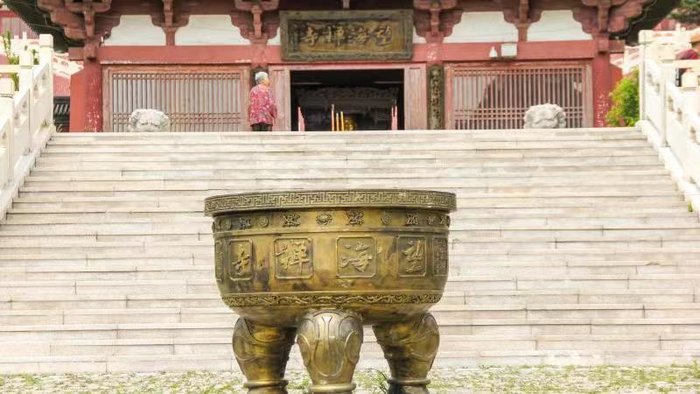 院内正中间,矗立着一个圆形香炉鼎,做工精巧细腻,四面房子正对着这个香炉鼎,仿佛它就是权威的象征,它庇佑着寺庙里每一个生灵,庇佑着来年的风调雨顺,五谷满仓。