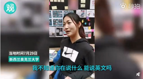@头条新闻:7月29日下午,在新西兰奥克兰大学一个食堂小院里,有留学生在所谓的“连侬墙”上张贴反对修订逃犯条例的标语,标语中支持“港独”暴徒的言论昭然若揭,并且大肆抹黑香港警察、特区政府。刚好路过此地的刘同学一行三人见状后上前与之理论,一开始他们用普通话交流,但一见到刘同学他们拿出手机录像,对方立刻切换成英语,并声称听不懂中文。留学生用普通话问:“我说中文不可以吗?”该女子用英语回答: "Yes. you can. But I don't know what you're talking about."(你可以说中文。但我听不懂。)