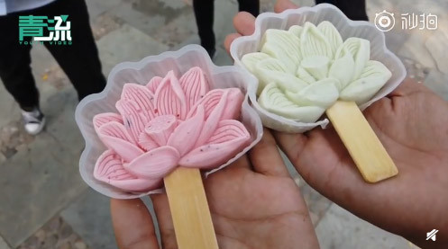 @北京青年报:前段时间,圆明园的并蒂古莲成了网红大热门。7月30日,圆明园推出荷花造型冰淇淋,价格十五元一根。包含荷花、草莓、玫瑰、朗姆提子、开心果五种口味。很多游客当时就被可爱的造型,甜美的味道吸引,快去打卡荷花冰淇淋,尝尝荷花的味道。
