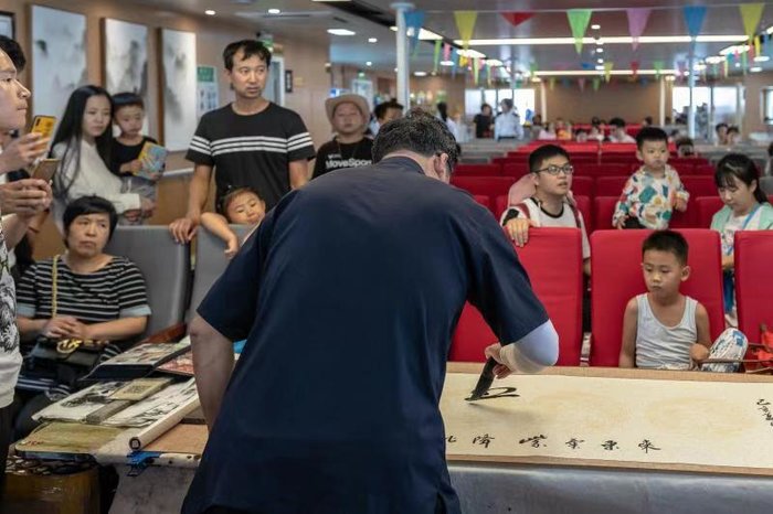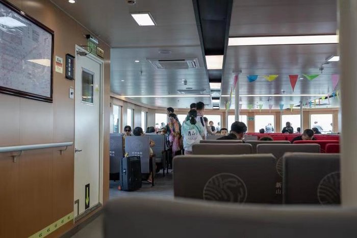 我们出海坐的是多层的轮渡,提供吃喝服务,甚至有字画和歌舞表演,极具有观赏价值。