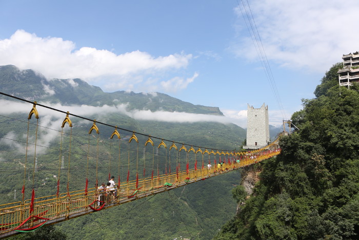 而前山的情人桥,一座悬挂在两座悬崖之间的吊桥,桥上挂着随风飘荡的丝带,还有见证爱情的心锁,两人携手漫步在桥上,也是一种不错的体验。