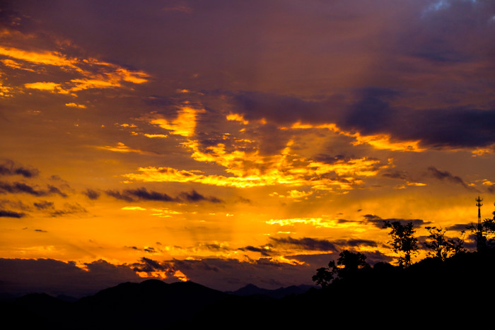 当看着远处那一抹鱼肚白,太阳上升了,伴着清晨的小鸟啼叫,太阳慢慢划出地平线,那万道霞光透过云隙,照在远处的山尖上,为这片连绵起伏的山野铺上了一层金辉。