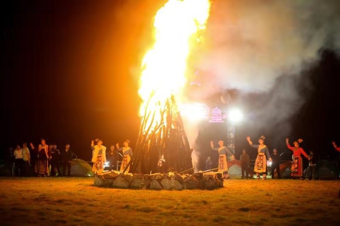 晚间热情的羌族人民带领着我们围着篝火跳着羌族特色舞蹈,眼前红艳艳的火光点亮了每个人的激情。