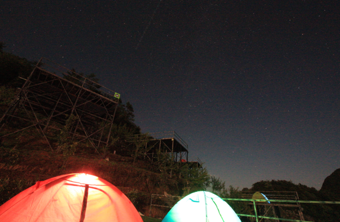 吃饱喝足后准备就寝的时候,可能因为太开心久久不能入眠,就想在平台上走走,掀开帐篷幕布的那一瞬,就被天空满天星海深深吸引着,不愿低下头挪开眼。