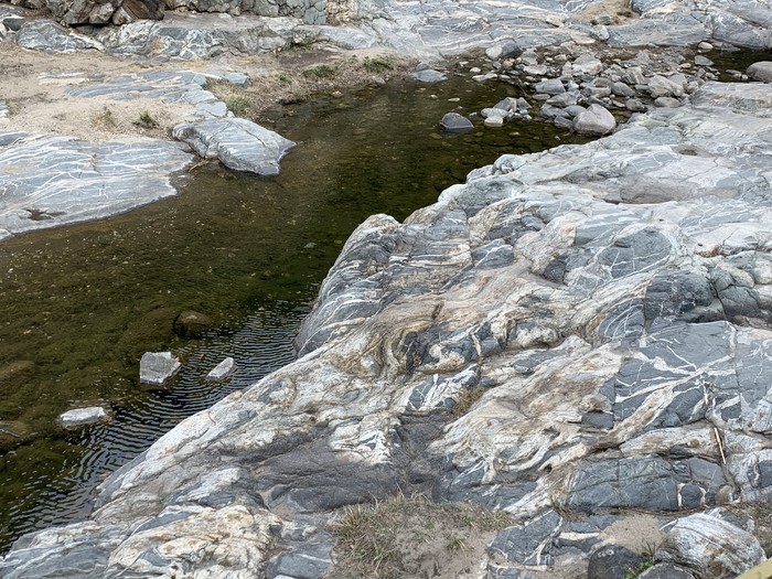 再往上走个半小时左右就到彩石溪了。虽然彩石溪有:泰山森林博物馆”、“泰山小江南”、“北方小九寨”的美誉,但是彩石溪真的不是只有五彩斑斓的石头。而是色彩斑斓的带状彩石。是大自然与人文景观的浑然天成。从彩石溪停车点继续前行能看见有一条溪水“赤磷溪”水清见底,还有野生的赤鳞鱼戏游,还有一个赤鳞鱼馆十分受小朋友喜欢。带孩子的家长千万不能错过哦。