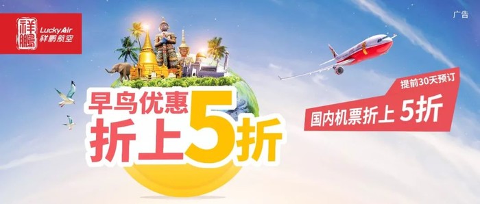 祥鹏航空早鸟优惠机票,提前30天购票,即有机会享受折上5折起优惠!