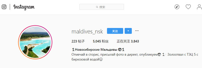 甚至还有人在ins上专门给这个“西伯利亚马尔代夫湖”建了一个账号,叫maldives_nsk,目前已有5000+粉丝,时不时的更新状态。