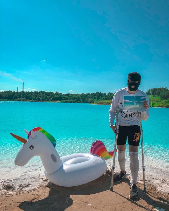 摄影师马克西姆·弗罗洛夫说:“这里高峰时段堵车严重,我们开了两个小时才过来。我明白这里的水有毒。但它真的很漂亮!我们停了一会儿,我告诉自己,为什么要失去这个机会?”