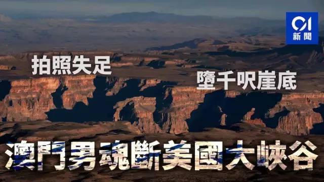 3月底,一名中国澳门特区居民当天在大峡谷旅游时不慎坠崖身亡。据悉,该男子于当地28日早上约10时参加自费活动,在天空步道附近的老鹰崖,使用自拍杆自拍时坠崖,当时有领队在场。救援人员使用直升机将其遗体从300米深的谷底运回。