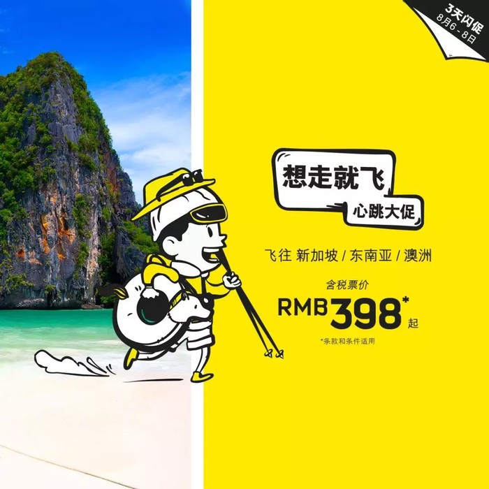 酷航闪促,含税398元起飞新加坡/东南亚/澳洲