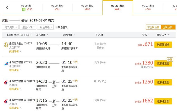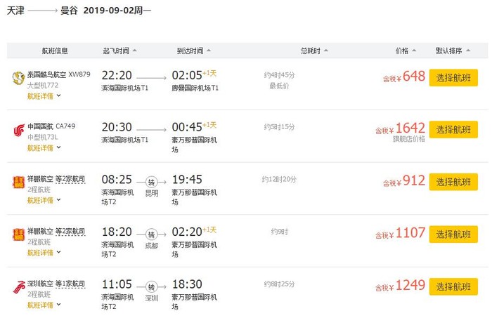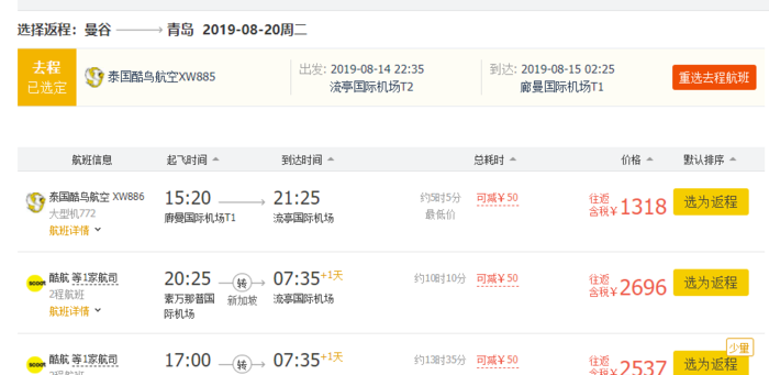 另外,泰国的酷鸟航空也在促销,上海/沈阳/天津/青岛/南京五城,直飞泰国曼谷,单程含税最低620元起(同样可以使用飞猪50元机票券)~