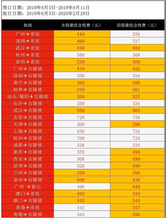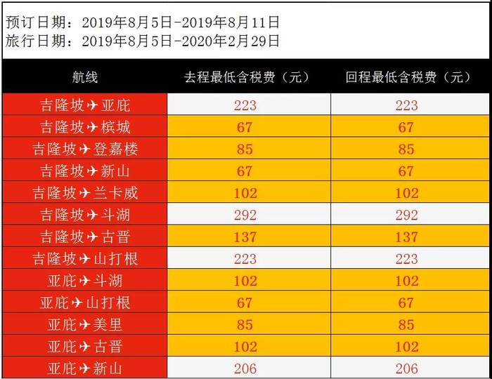 暂时只实测了以上航线,本周亚航促销正在进行中,大家可参考下方促销表格搜一搜自己要去的地方,说不定可以搜出国庆票。