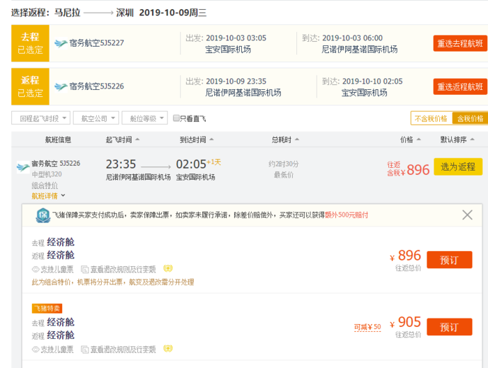深圳=马尼拉,含税券后855元,10.3-10.9;