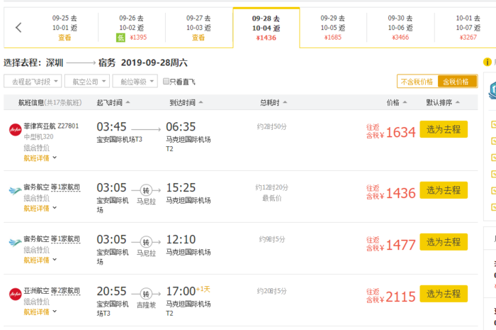深圳=宿务,含税1400多元,9.28-10.4;