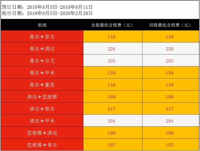泰国航线: