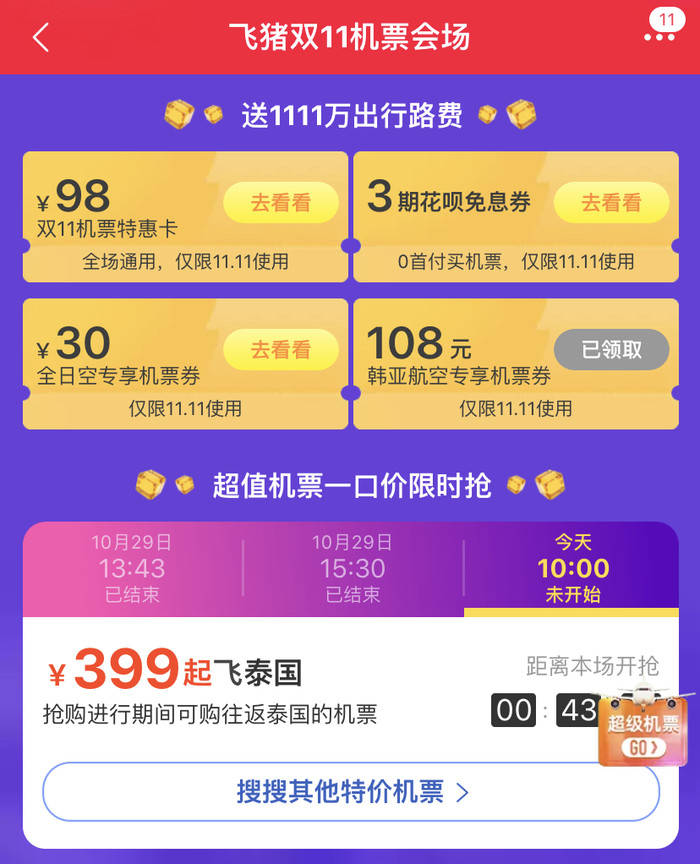 飞猪的双十一活动,含税399元往返泰国,看到这个价格,可能有的朋友就直接忽视了。