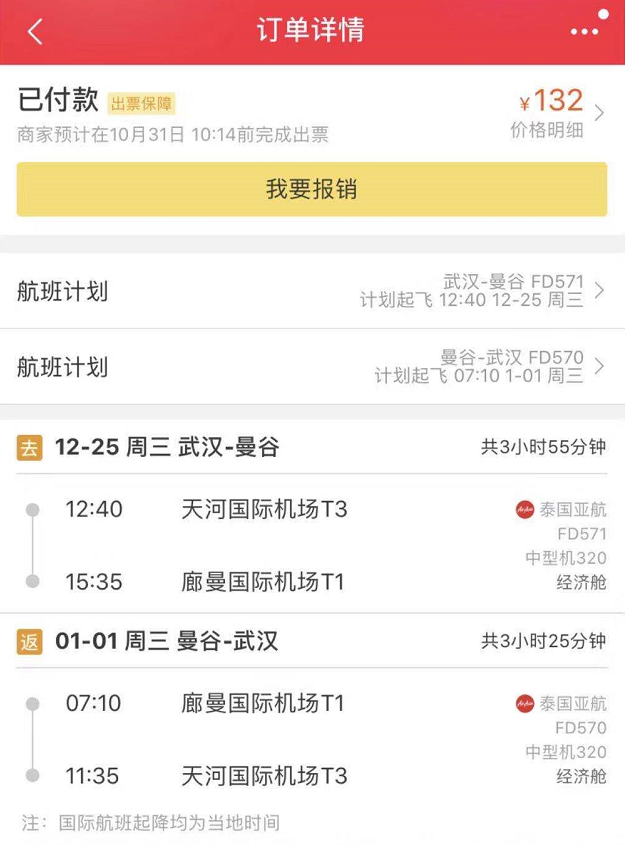但是,昨天有番友晒单,用完券后,最终南京往返曼谷,只花了133元,武汉往返曼谷 132元!