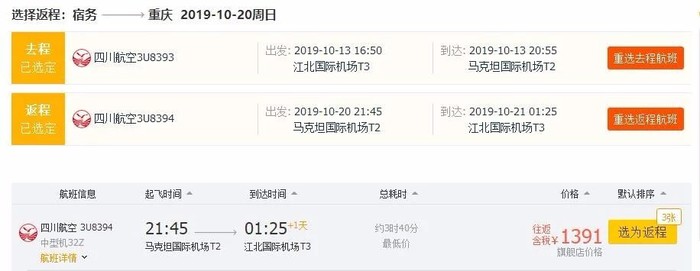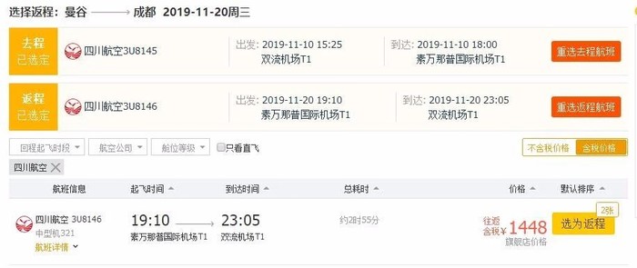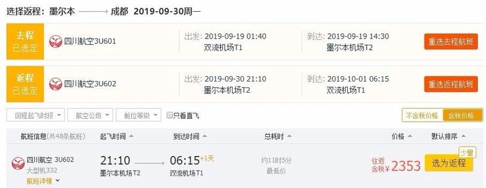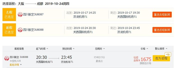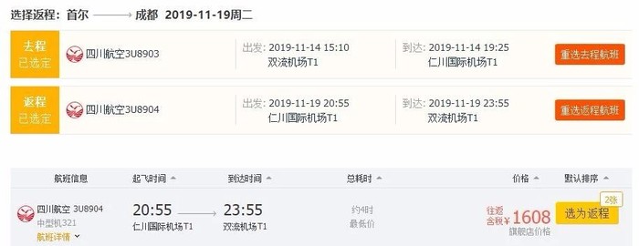 大家可以在川航官网、APP或飞猪、去哪儿等OTA平台按自己的飞行计划搜一下票。
