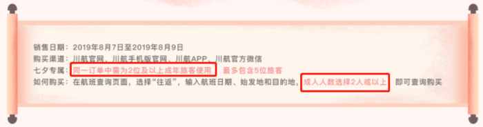 另外,本次川航七夕特惠,虽然活动规则注明了购买时需选择2人或以上,但实测一人也是可以下单的,而且也可以选择在OTA平台下单。