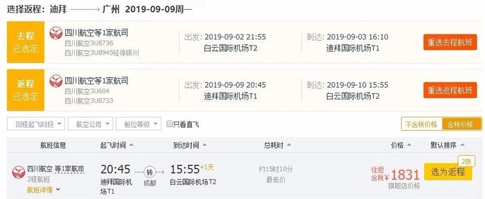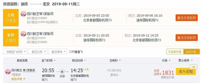 上海=迪拜,含税往返1.8K,10月;川航官网跟飞猪上价格一样;