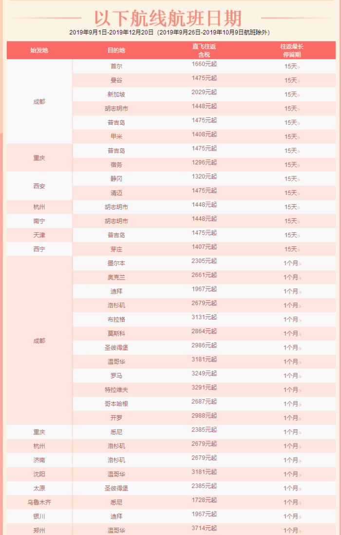 川航七夕特惠,放票情况不错,不少航线都值得入手~