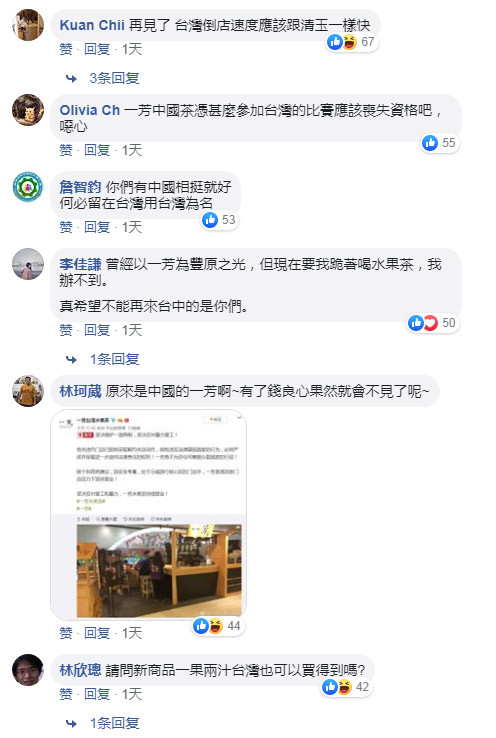 这边刚刚安抚好,那边又开始闹事情,就因为这个官方说明台湾的网友炸了....一个个的都表示因为“一芳”支持“一国两制”而要和它说再见,脸书上更是对骂声不停。