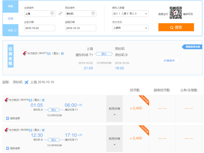 上海浦东—洛杉矶:往返含税2000元,出行时间覆盖国庆假期;