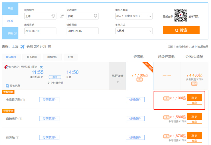 购票渠道:东航官网、APP,飞猪、去哪儿等OTA平台