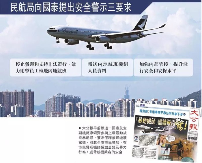 中国民航局在安全风险警示中,对香港国泰航空明确提出三点要求: