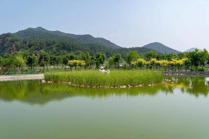 2个小时后,我已经到了在天女小镇前面的大广场,旁边一个标志性的大湖,静静地坐落在山的一边,湖里的水草偏暖绿色,一根根、一簇簇地相拥在湖中央,为这片湖填色不少。