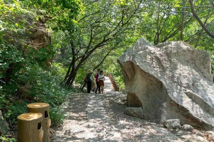 一路上看游人嬉戏、拍照、说笑、吵吵嚷嚷,寂静的山林间多了人间气。